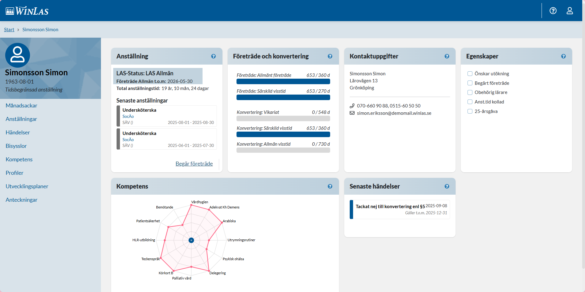 Vanligtvis kommer du direkt till din personsida. Personsidan visar information om dig som anställd. Vilken information du får ta del av styrs av din arbetsgivare.