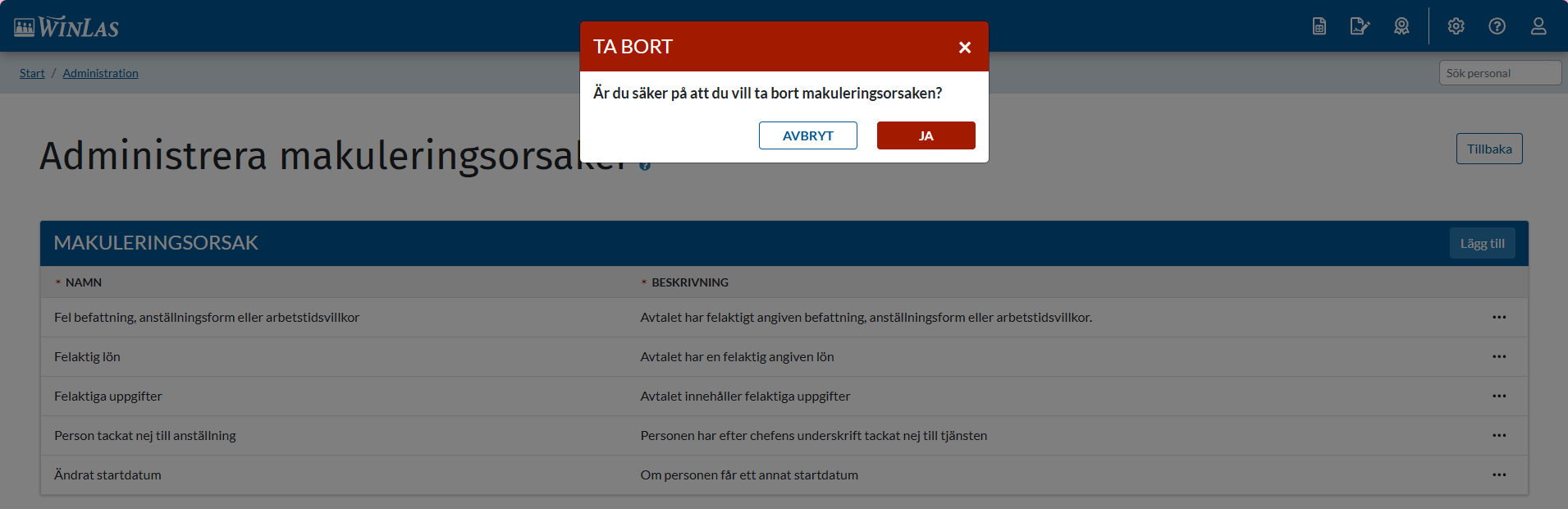 - Bekräfta att makuleringsorsaken ska tas bort i den dialogruta som öppnas
