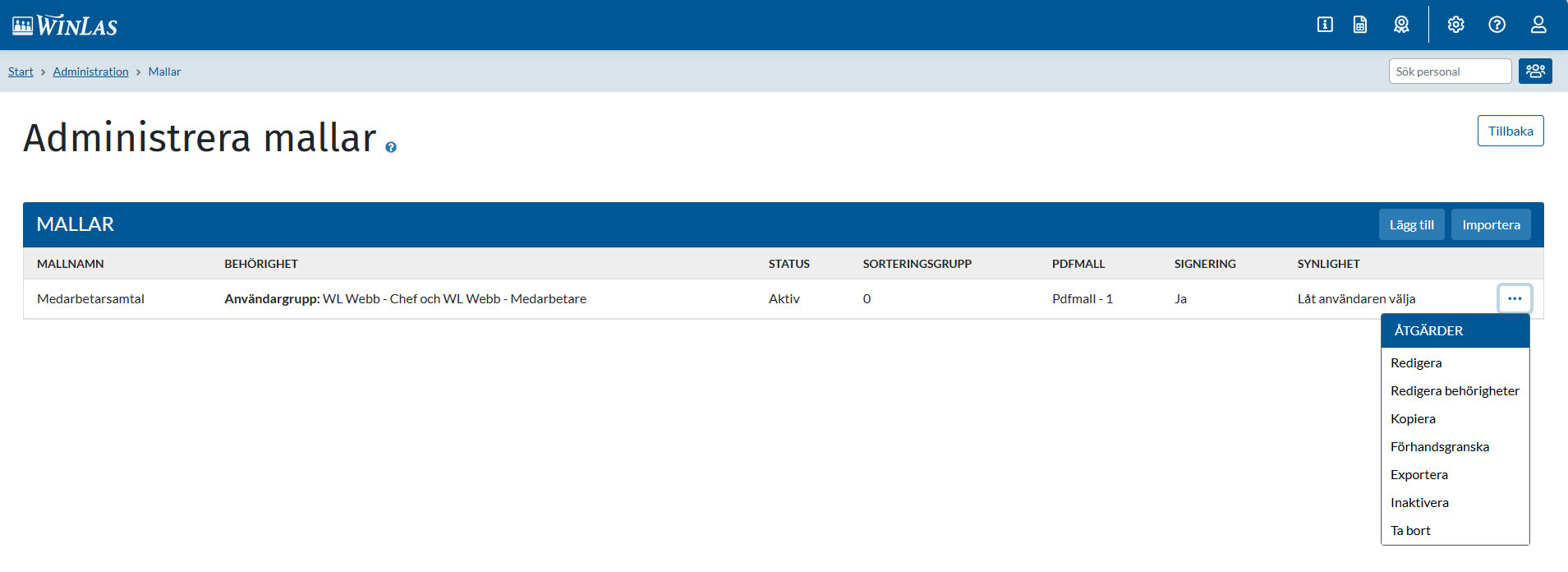 1 Gå till Administration- Personalanteckningar- Mallar.
